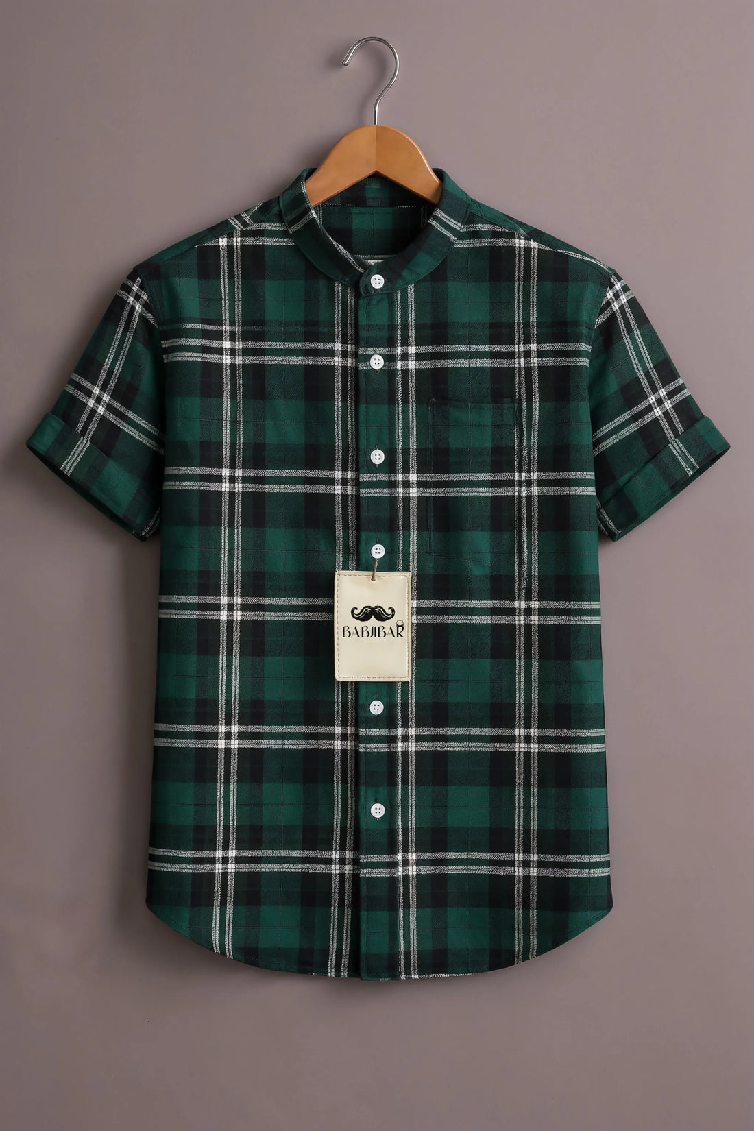Men’s Deep Green Tribal Panel Mandarin Collar Shirt