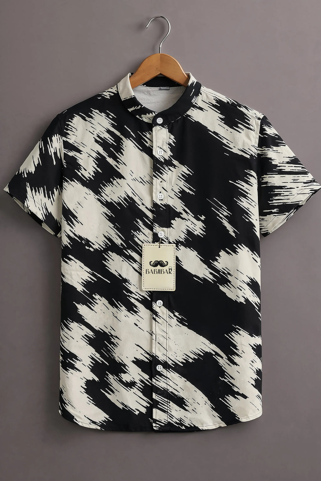 Men’s Black Abstract Brush Print Mandarin Collar Shirt
