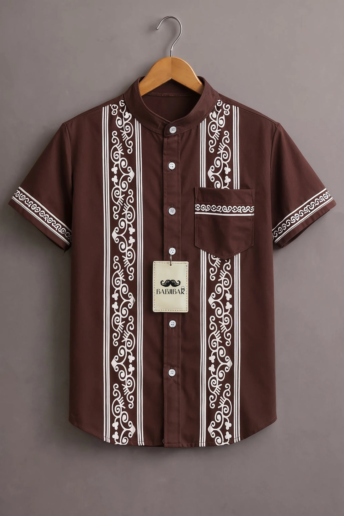 Men’s Brown Tribal Stripe Mandarin Collar Shirt