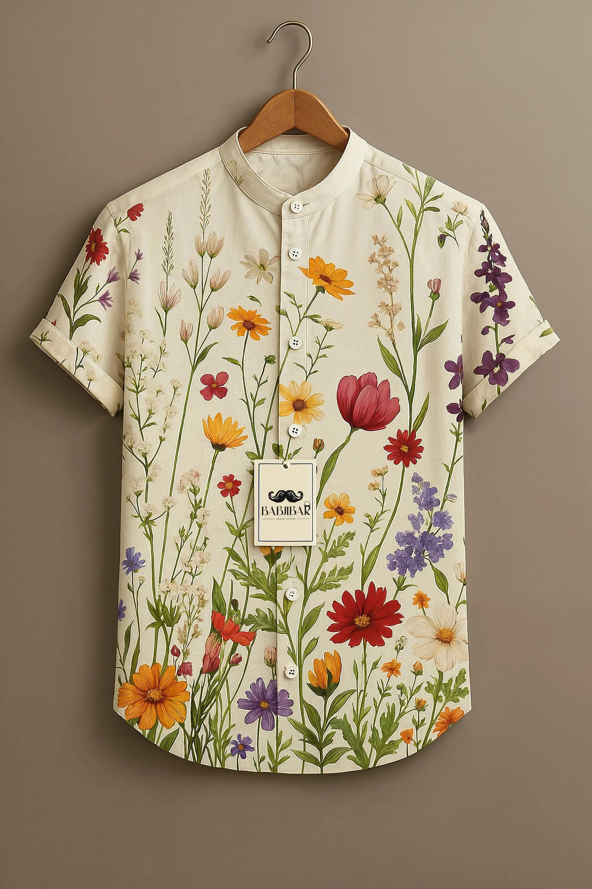 Add a touch of fresh nature to your wardrobe with the Cream Wildflower Botanical Shirt from Babjibar.
